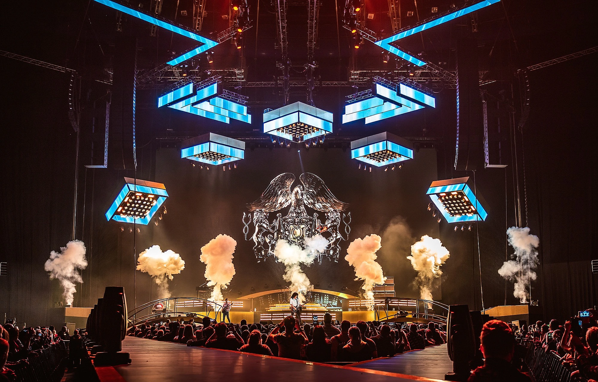 Na fenomenálním koncertě Queen Relived by Queenie v O2 Aréně, který nabídl nezapomenutelnou světelnou show, jsme se podíleli na výrobě klíčových prvků stage designu. Pro tuto jedinečnou událost jsme vyrobili pět hliníkových létajících kostek, které sloužily pro zavěšení osvětlení, LED panelů a pyrotechniky. Jedna z kostek byla navíc technicky upravena – vybavili jsme ji sklápěcími schody, pochozí podlahou a integrovaným výsuvným klavírem se stoličkou. Dále jsme vyrobili dva zlaté obloukové mosty, které propojují pódia, a velký most za hlavní scénou, který tvořil silný vizuální prvek. K tomu jsme přidali menší pódium se schody pro bubeníka. Naše precizní výroba a inovativní přístup podtrhly atmosféru tohoto nezapomenutelného hudebního zážitku.